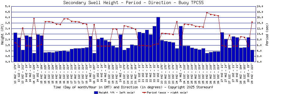 Primary Swell Height and PeriodPrimary and Secondary Swell DirectionCombined Sea Height